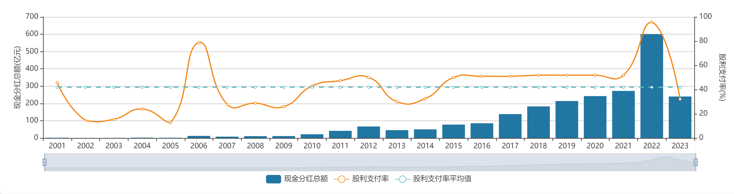 中国移动拟每10股派发21.77元,分红总额465.68亿元,暂居两市第六。中国移动年报披露,董事会建议2023年全年派息率为71%。中国移动计划从2024年起,三年内以现金方式分配的利润逐步提升至当年股东应占利润的75%以上。天风证券唐海清等人在3月24日发布的研报中表示,中国移动发布2023年度业绩,实现营业收入10093亿元,同比增长7.7%,其中主营业务收入达到人民币8635亿元,同比增长6.3%,高于行业平均增幅;实现归母净利润1318亿元,同比增长5.0%,盈利能力继续保持国际一流运营商领先水平。